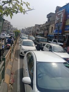 -भीषण जाम, फुटबाल चौक पर निर्माण कार्य से बिगड़ी ट्रैफिक व्यवस्था