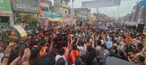 📰:-जालंधर में रामनवमी पर्व पर रामनवमी उत्सव में कमेटी की तरफ से धूमधाम से शहर में शोभा यात्रा निकाली गई। इस शोभायात्रा में हजारों श्रद्धालु नतमस्तक हुए और भगवान श्री राम और बालाजी का आशीर्वाद प्राप्त किया। शोभायात्रा में कई समितियां ने बालाजी के सुंदर स्वरूप और भैरव बाबा के साथ शिरकत की। सभी समितियां बालाजी और भैरव बाबा के साथ ढोल ताशे और नासिक ढोल की धूम पर खूब झूमी ओर शोभा यात्रा में रौनक लगा दी। इस शुभ अवसर पर राम भक्तों ने स्टेज लगाएं ओर लंगर वितरित किया। हर जगह अलग-अलग तरह के लंगर लगाए गए। इस शोभायात्रा में शिवसेना नेता नरिंदर थापर, शेखा बाजार शॉपकीपर एसोसिएशन के प्रधान हरपाल सिंह, राजीव ढींगरा, पूर्व विधायक व सीपीएस केडी भंडारी, यूनाइटेड मीडिया क्लब के प्रधान सुक्रांत सफरी, यूनाइटेड मीडिया क्लब के महासचिव टिंकू पंडित, पंजाब प्रेस क्लब के जनरल मैनेजर जतिंदर पाल सिंह, पंजाब प्रेस क्लब के जनरल सेक्रेटरी राजेश थापा, रमेश गाबा, ज्योति प्रकाश सहित अन्य गणमान्यों ने इस शोभा यात्रा में शिरकत कर बालाजी और भगवान श्री राम का आशीर्वाद प्राप्त किया। शोभायात्रा में काली माता, कृष्ण जी और शिव जी की सुंदर झांकियां पेश की गई। सभी भगवान के रूप धारण करने वाले कलाकारों ने भी बहुत अच्छी पेशकश दी। रामनवमी के पावन अवसर पर इस शानदार शोभायात्रा में सभी भक्तों ने खूब रौनक लगाई और झूमे। इस शोभायात्रा में सभी भक्तों को भगवान राम की भक्ति करने का और भाईचारा बनाने का संदेश दिया गया।