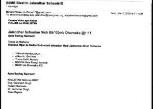 рд░рд╛рдорд╛ рдордВрдбреА рдЗрд▓рд╛рдХреЗ рд╕реНрдерд┐рдд рдПрдкреАрдЬреЗ рд╕реНрдХреВрд▓ рдХреЛ рдПрдХ рдЖрддрдВрдХреА рд╕рдВрдЧрдарди рдХреА рдУрд░ рд╕реЗ рдмрдо рд╕реЗ рдЙрдбрд╝рд╛рдиреЗ рдХреА рдзрдордХреА рдорд┐рд▓реА рд╣реИред